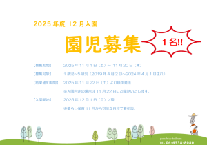 1名(1歳児〜5歳児)(2019年4月2日~2024年4月1日生れ)